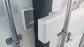 Portes : Porte double-battant avec un joint d’étanchéité spécial sur pourtour | Rayon d’ouverture environ 270° | Barres et crochets de fixation galvanisés, avec manchons de plastique intégrés | Fixations: Soudées au battant de porte grâce à des charnières galvanisées et forgées